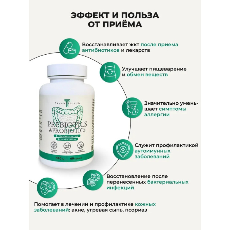 Пребиотики и пробиотики для кишечника в капсулах, 60 капсул