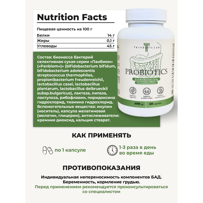 Probiotics от TL – это живые лактобактерии и бифидобактерии. Преимущество нашего пробиотика в том, что это уникальный комбинированный комплекс (для взрослых).