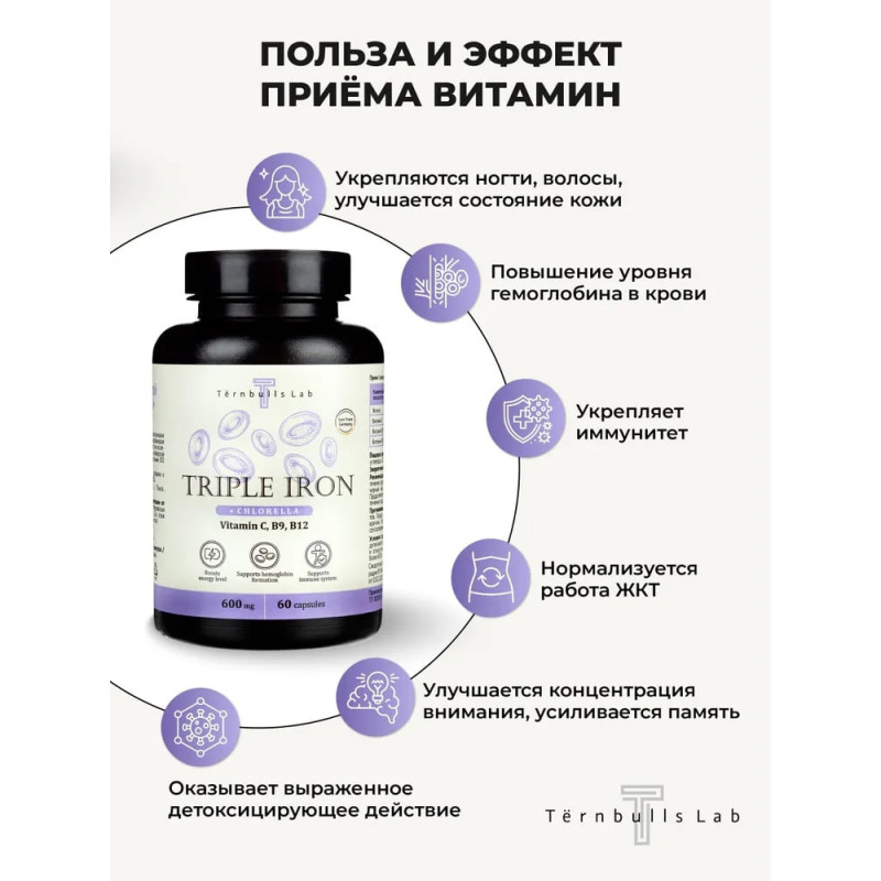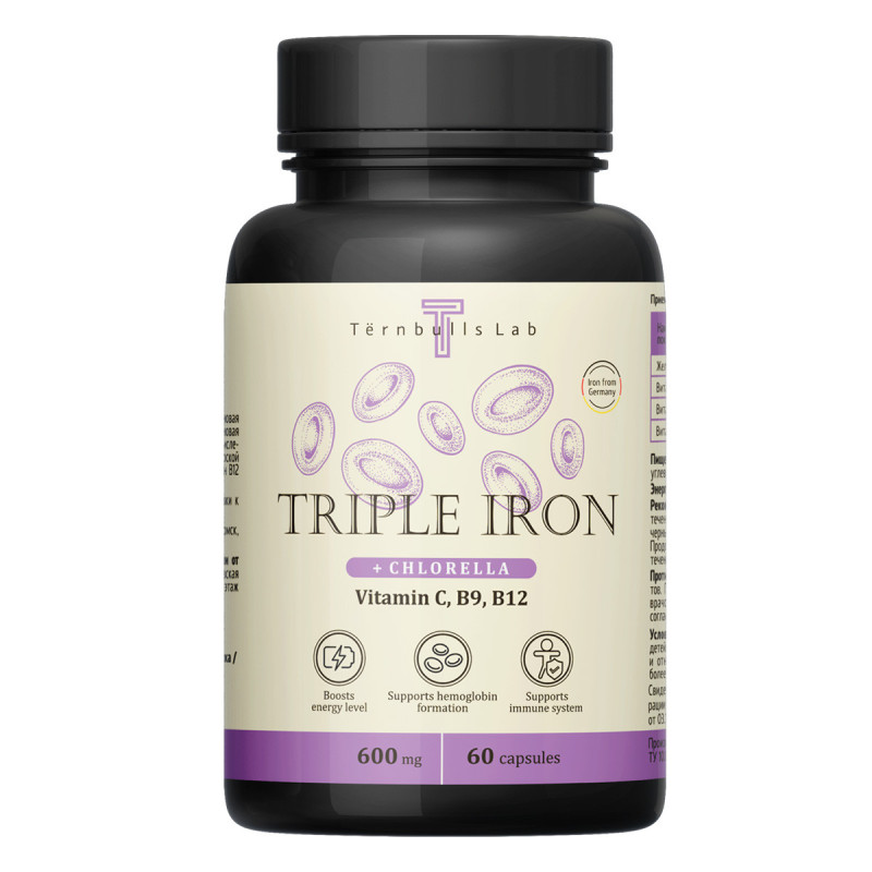 Тройное железо с хлореллой от Tёrnbulls Lab это препарат железа нового поколения из Немецкого сырья, который представляет из себя высокоэффективное и легко усваиваемое железо в составе хелатного комплекса.