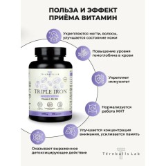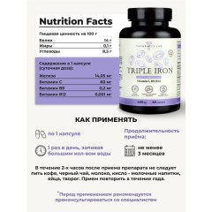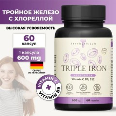 Тройное железо с витаминами В9, В12 и С, 60 капсул