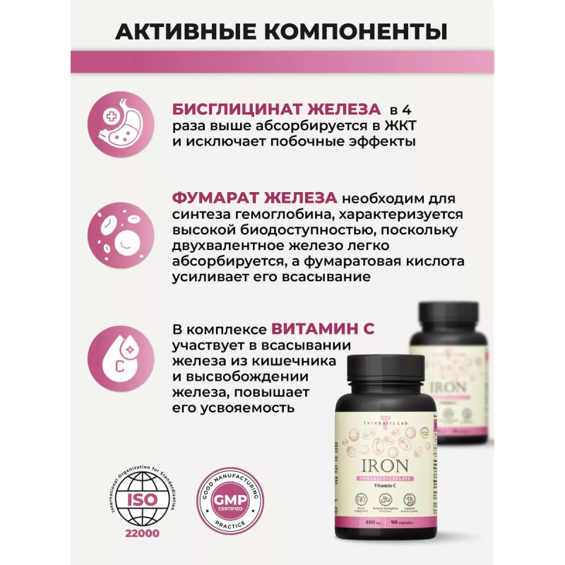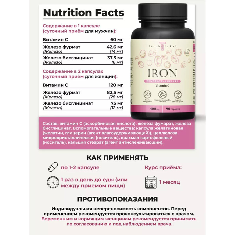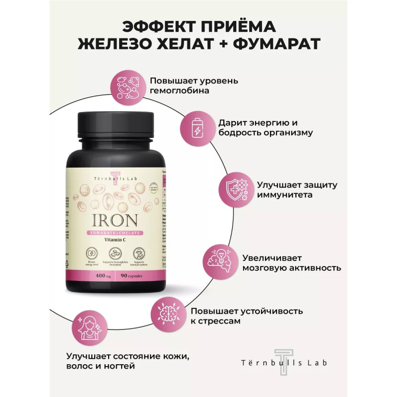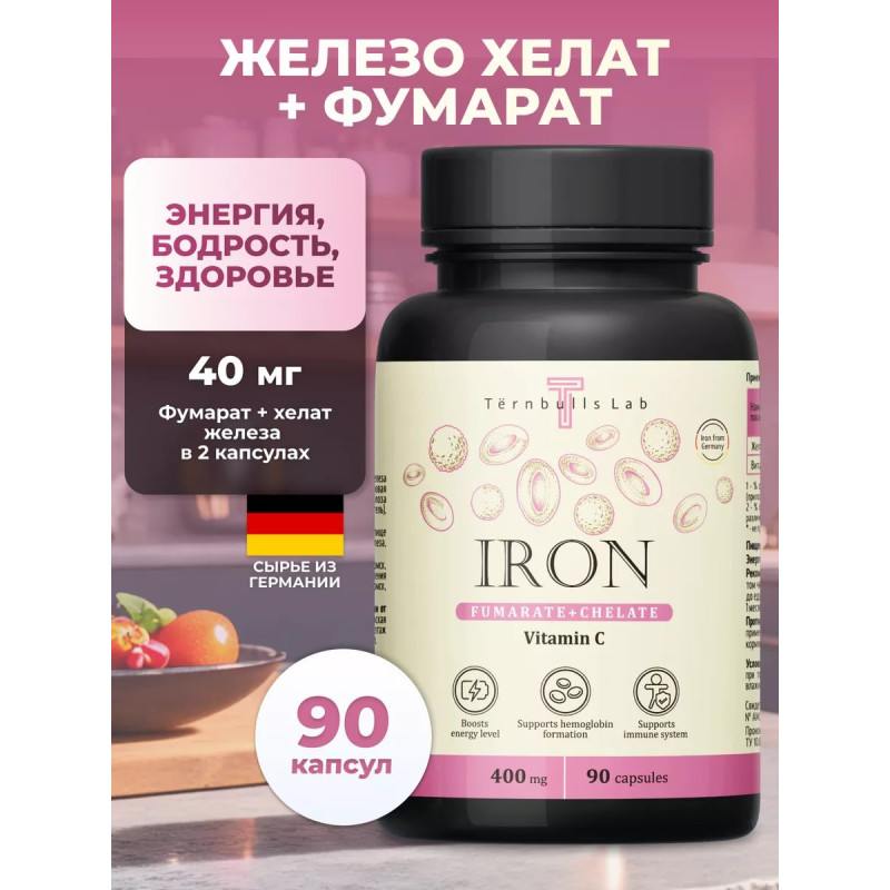 Комплекс Железо фумарат и хелат с витамином C от Ternbulls Lab – это эффективное средство, которое поможет вам восстановить здоровье и энергию.